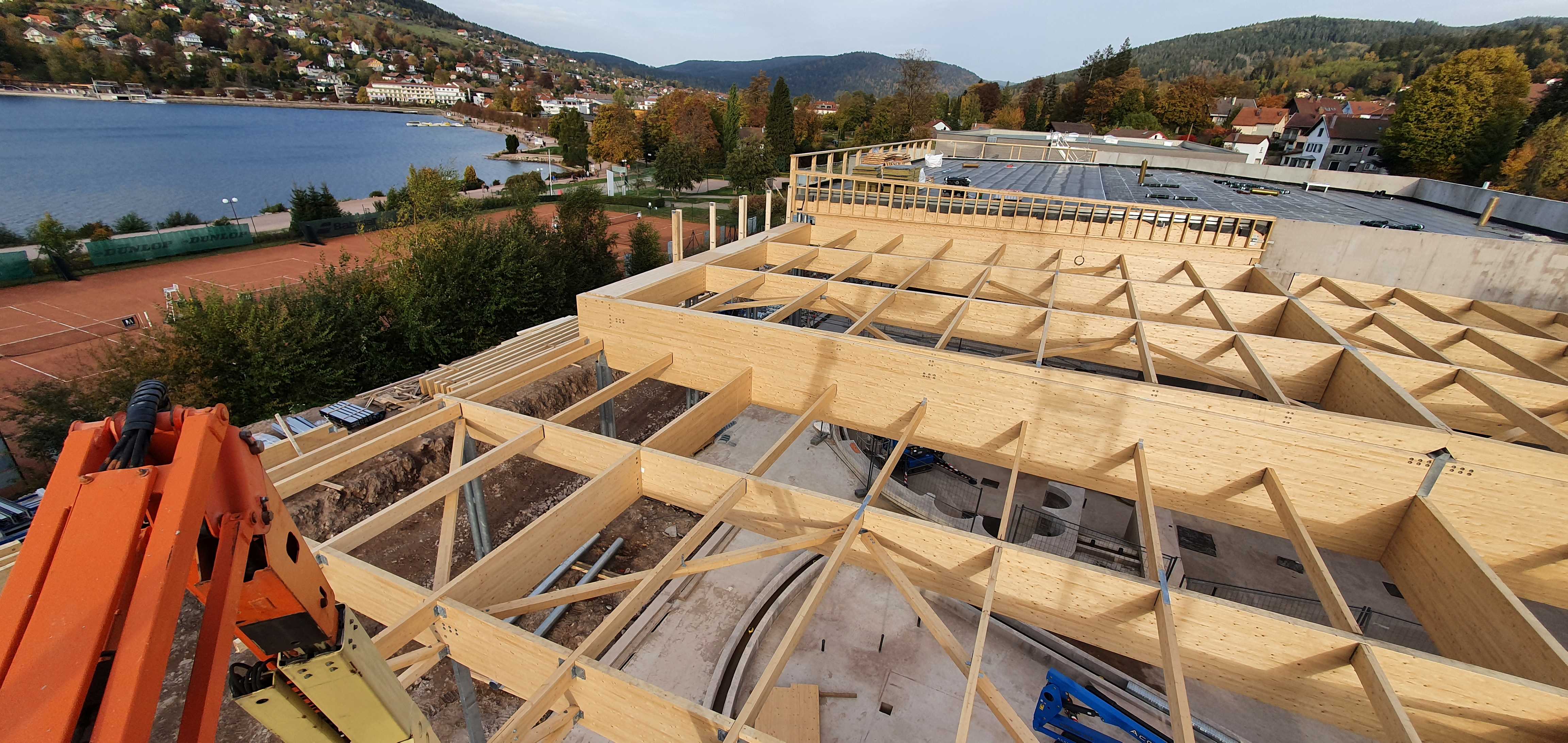 Ce ne sont pas moins de 285 m3 de bois (lamellé collé + bois massif), 3 300 m² d'ossature, 1 500 m² d'isolant et 3 300 m²